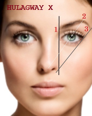 3.Tumoy---ang katapusan sa kilay, linyada sa kilid sa imong ilong ngadto sa gawas nga kilid sa imong mata, diri ra kutob ang imong kilay.